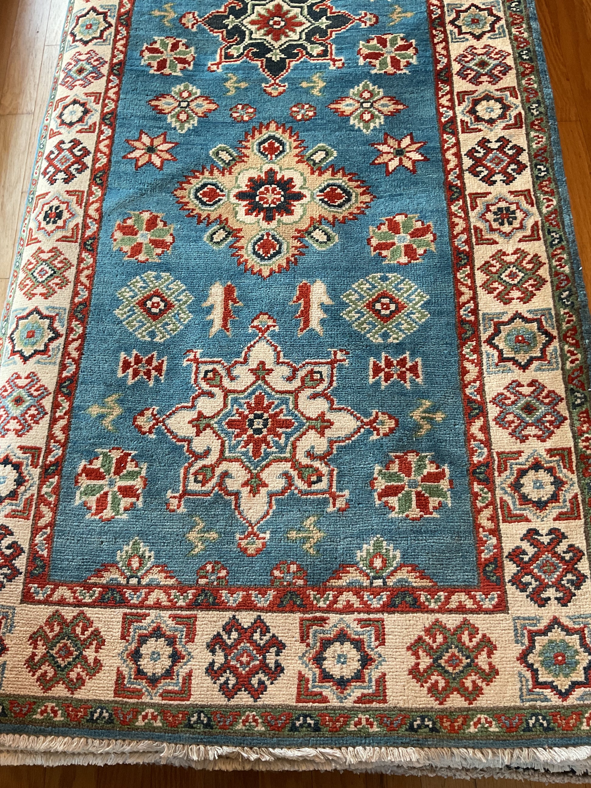 Kazak style rug handknotted in Afghanistan