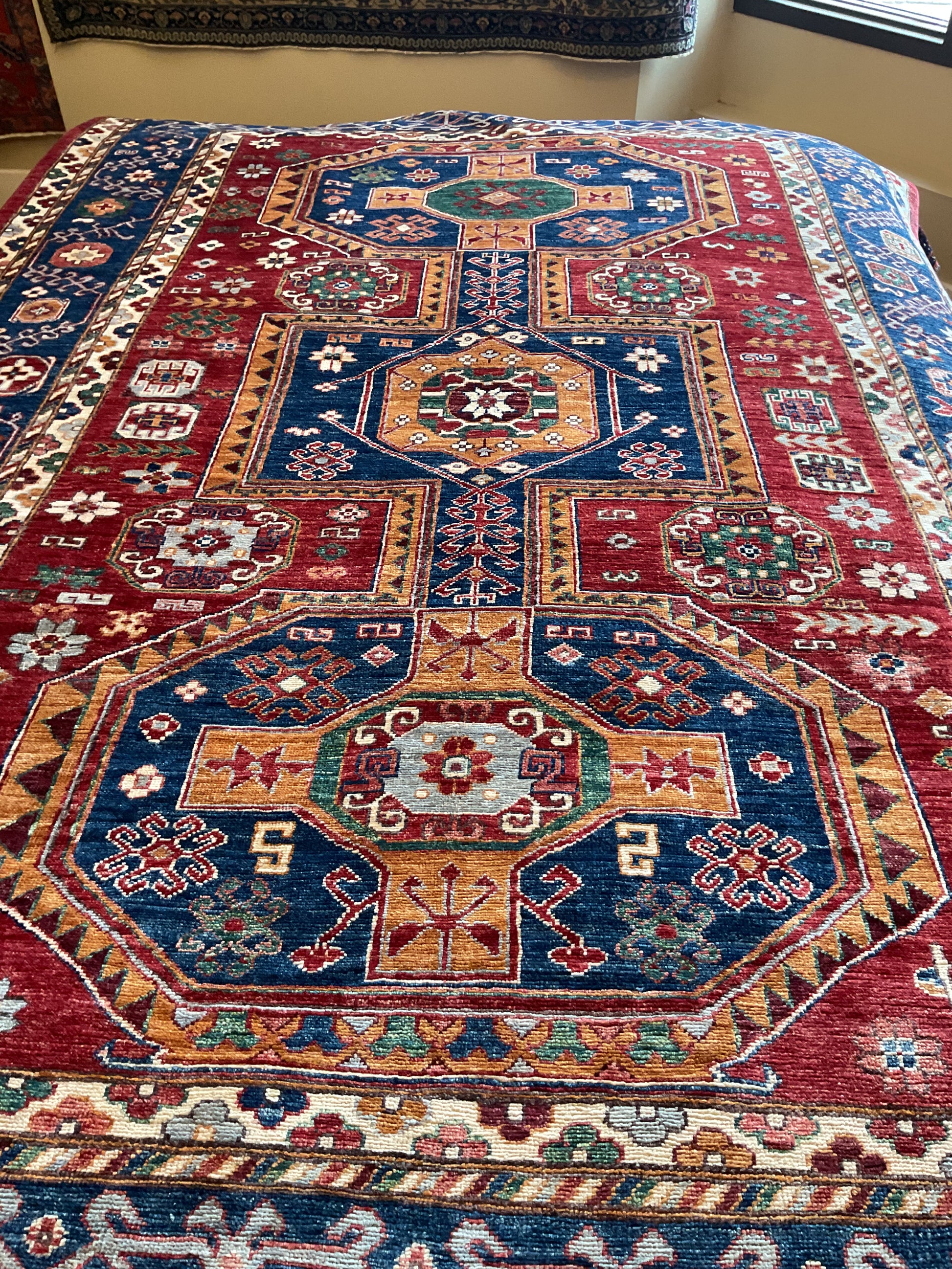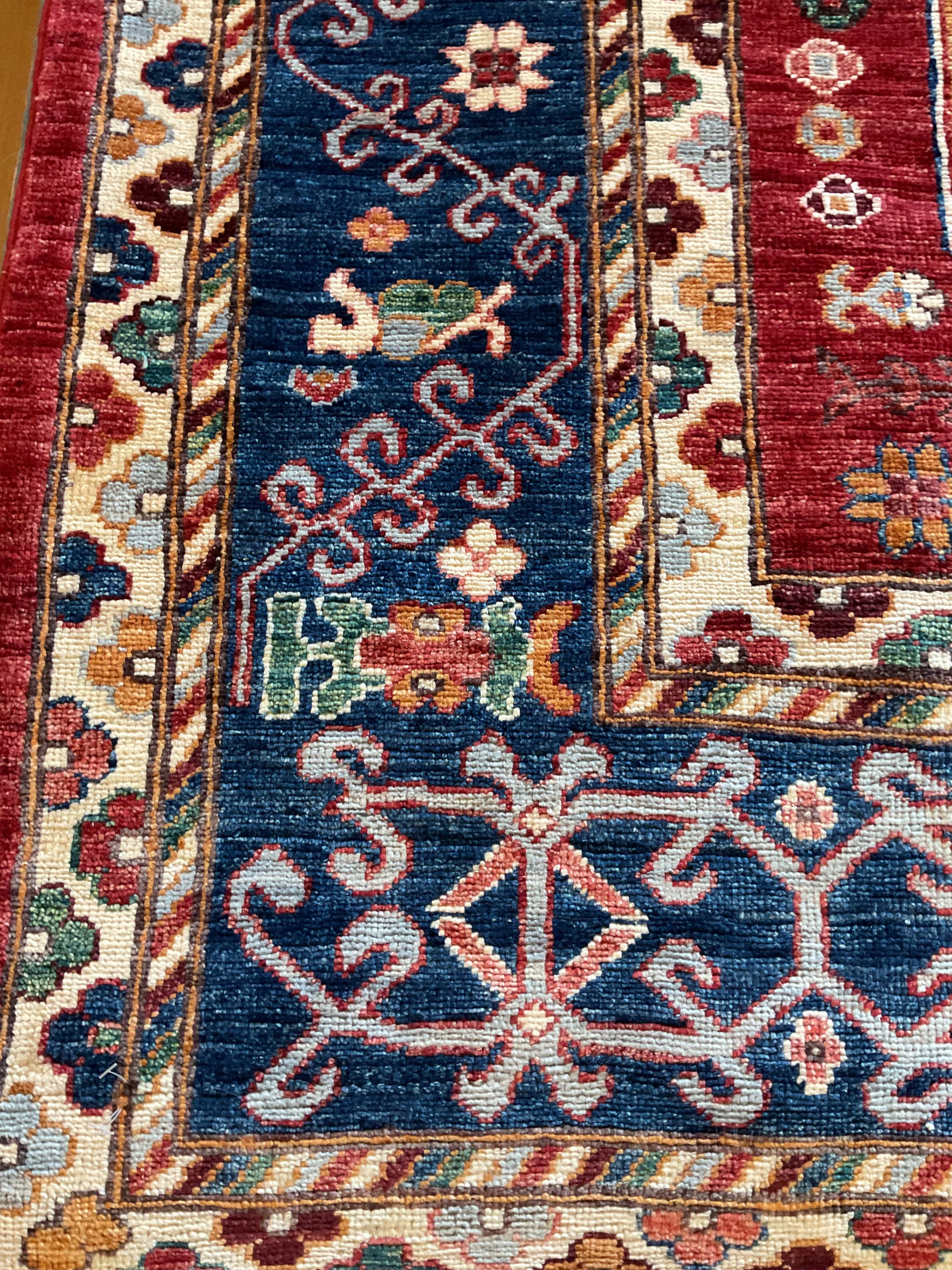 Kazak style rug handknotted in Afghanistan