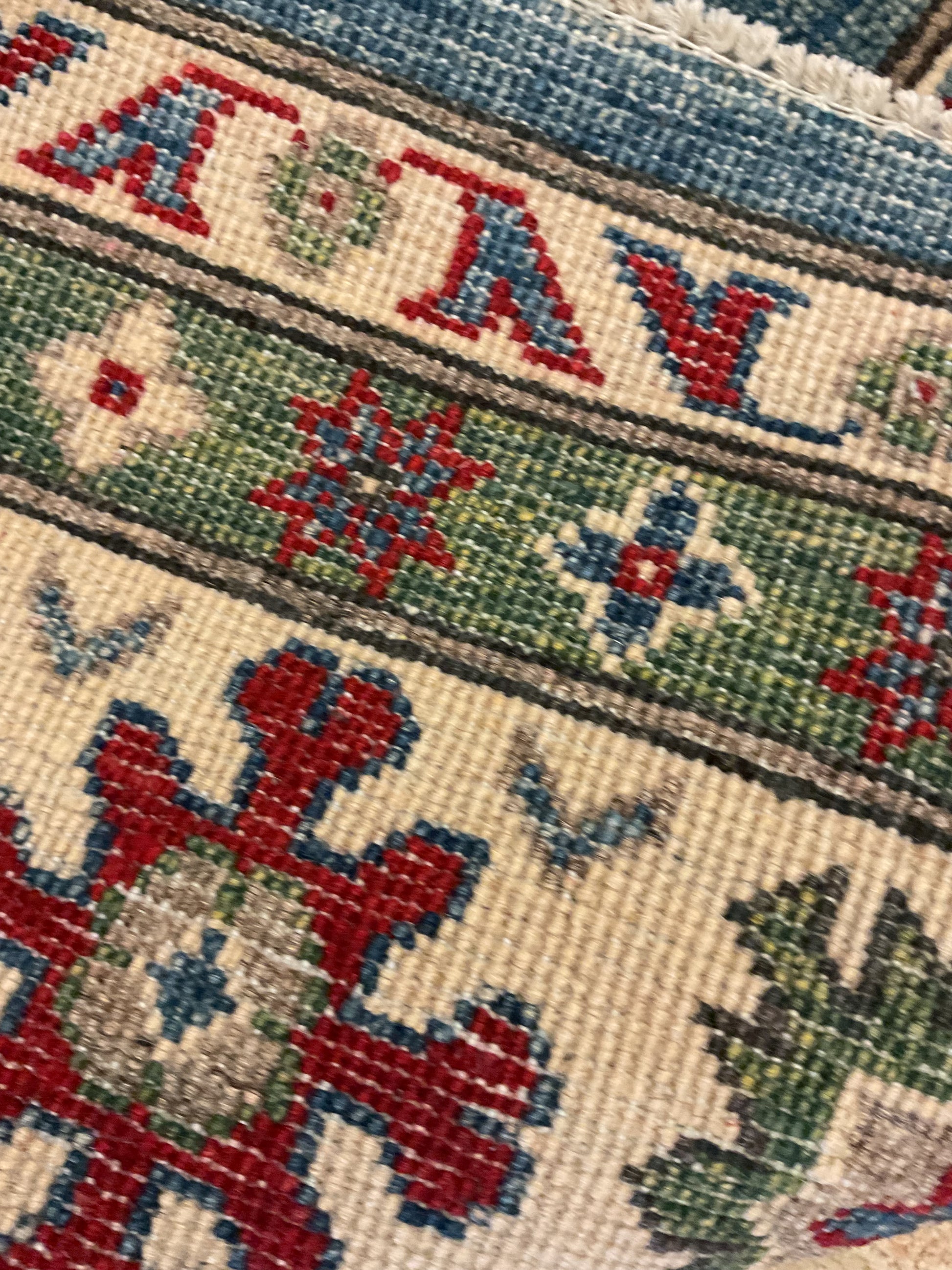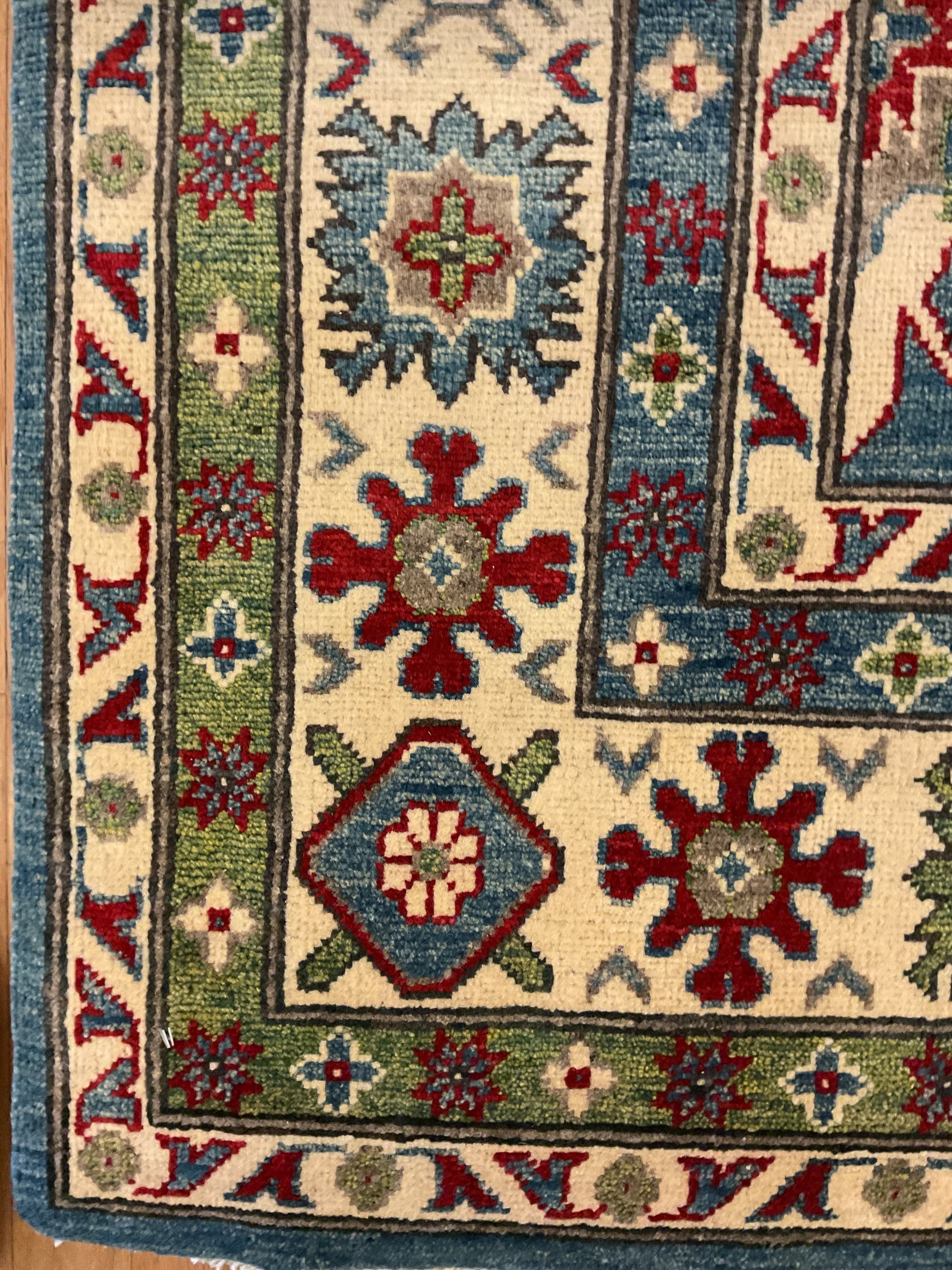 Kazak style rug handknotted in Afghanistan